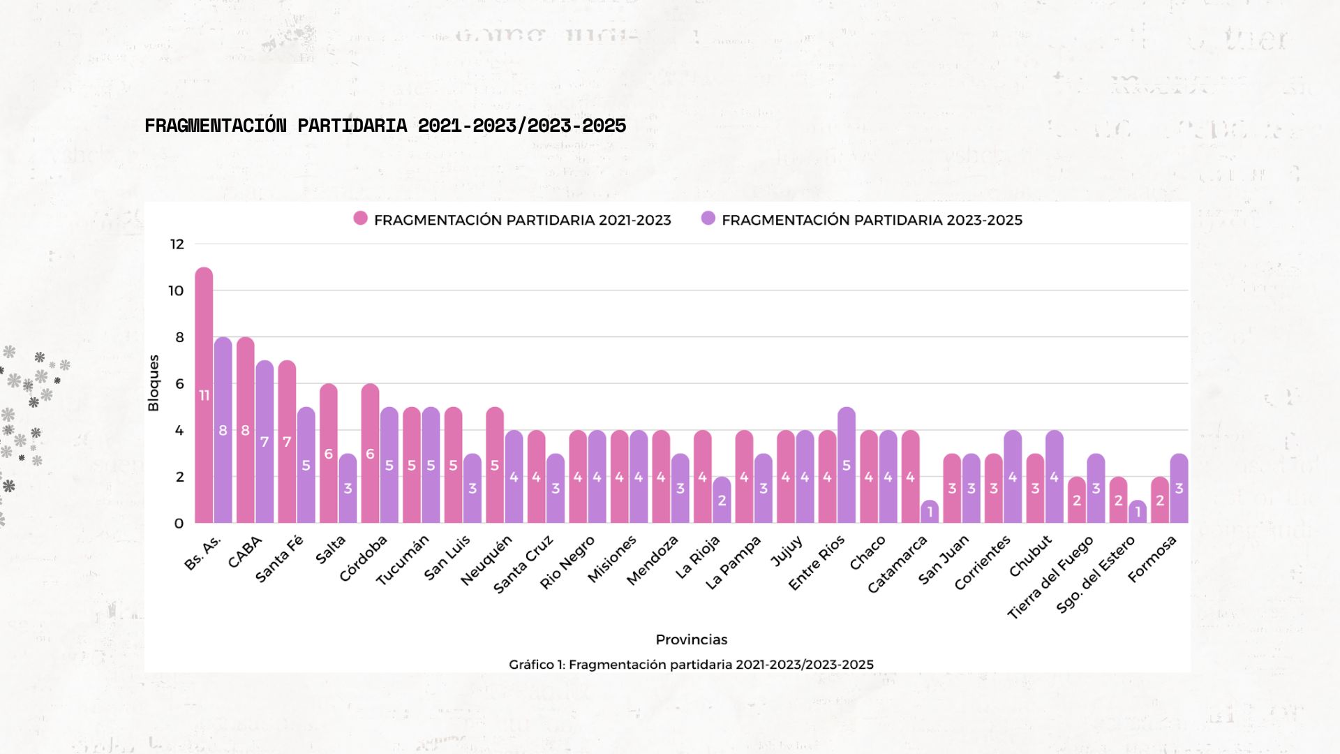 El presente trabajo se propone analizar el condicionamiento al acceso de las mujeres a los cargos de diputadas nacionales, a partir de la pregunta: ¿cómo afecta la fragmentación política, la magnitud de las bancas en juego y los encabezamientos de lista al acceso de las mujeres en la Cámara de Diputados Nacional para el período 2023-2025?